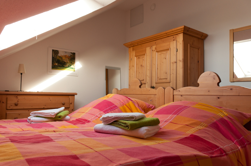 Im separatem, gemütlichem Schlafzimmer befinden sich ein großes Doppelbett mit einem Nachtisch, einer Kommode und einem Schrank mit ausreichendem Platz für Ihr Reisegepäck.
